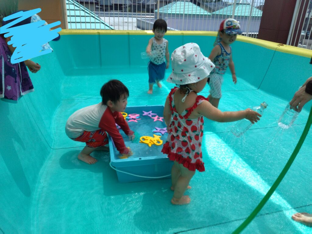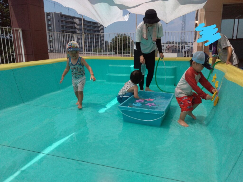 7月2回目のさくらのつぼみは屋上のプールで水遊びを行いました。