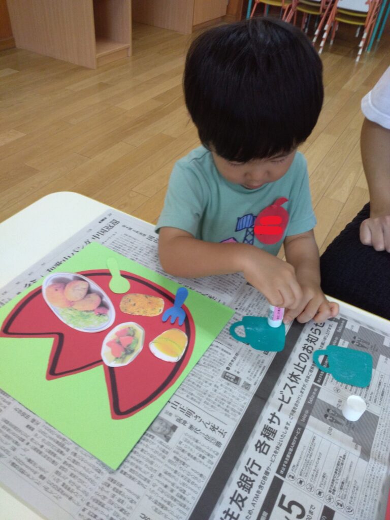 お買い物した品物はお皿にのせてお子さまランチにしてみんなで美味しく食べました。