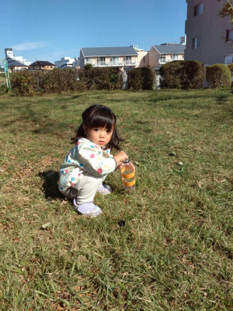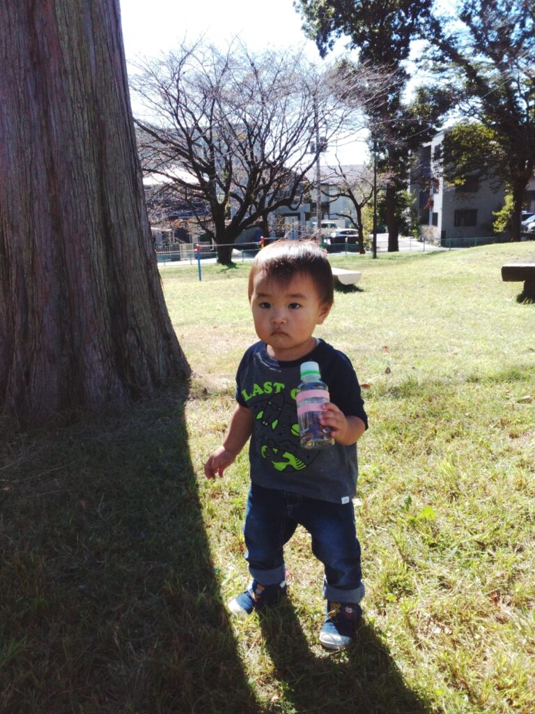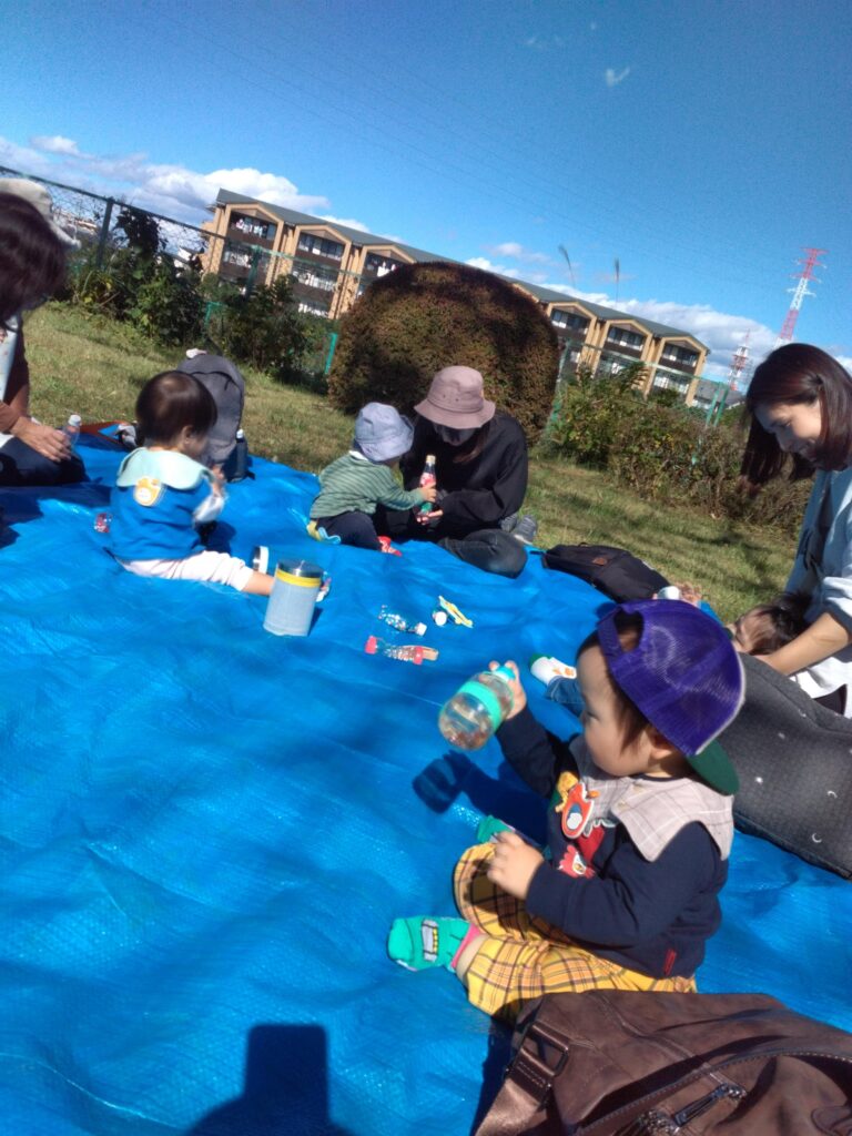 10月のさくらんぼは、ぽかぽかの秋晴れのなか、近くのカブトムシ公園にお散歩です。